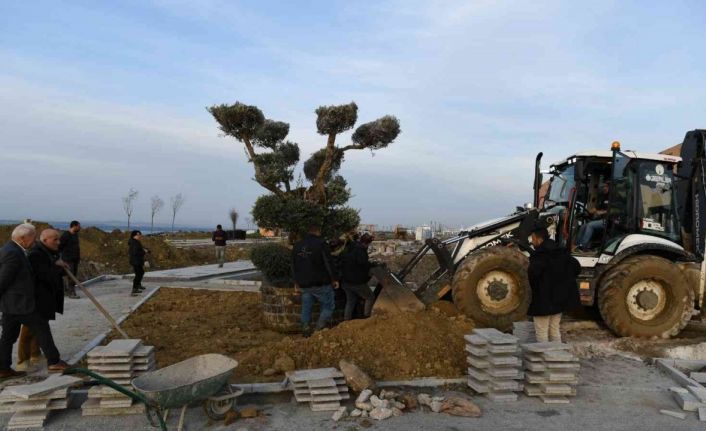 Çanakkale’nin Lapseki ilçesi sahilinde yapımı devam eden Millet Bahçesi’ne 350 yıllık bir zeytin ağacı dikildi.