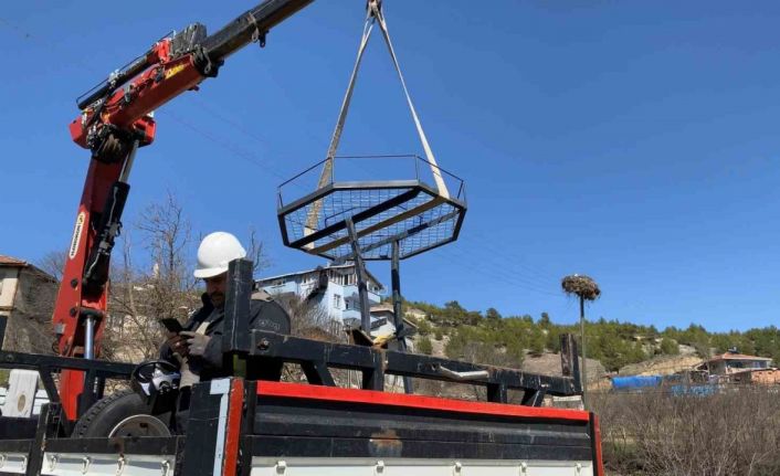 Leylek ölümlerini azaltmak için elektrik direklerine özel yuvalar taktılar