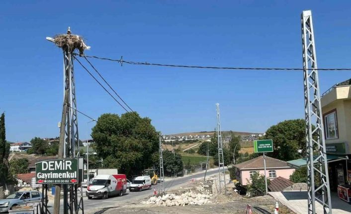 İstanbul’un Büyükçekmece ilçesinde belediyenin sürdürdüğü yol genişletme ve yenileme çalışması, bir leyleğin elektrik direğine yaptığı yuva nedeniyle durduruldu.