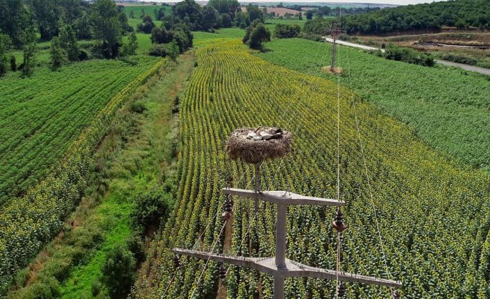 Avrupa ve Afrika kıtaları arasında mevsimsel göç halinde bulunan leylekler için Doğa Koruma ve Milli Parklar Genel Müdürlüğüne bağlı 1. Bölge Müdürlüğü Tekirdağ Şube Müdürlüğü ve TREDAŞ işbirliğinde elektrik direklerinin üzerinde yükseltme ve platformlar yapılarak, kuşların elektrik akımına kapılmaları önlendi. Tekirdağ’ın Hayrabolu yolu üzerindeki bir elektrik direğindeki platformda yuva yaparak iki yavrusu ile daha rahat yaşam sürdüren leylek, dron ile görüntülendi. Ayçiçeği tarlasında bulunan direğin üzerindeki platforma yuva yapan leylek, üzerinde dronu fark edince zaman zaman yavrularının üzerine kapanarak onları olası tehlikelerden korumaya çalıştı.