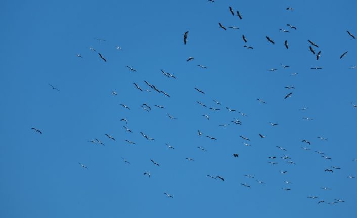 Leyleklerin göçü İskenderun Körfezi’nde güzel görüntüler oluşturdu.
