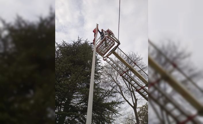 Türkiye Taşkömürü Kurumu (TTK) Karadon Müessese Müdürlüğü binası önündeki direğin makarasına takılan dolanan Türk Bayrağı; itfaiye ekipleri tarafından kurtarıldı.