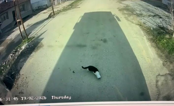 Malatya’da kafasını konserve kutusuna sıkıştıran kedi, otobüs şoförünün dikkati sayesinde kurtarıldı. O anlar araç içi kameralarına yansıdı.