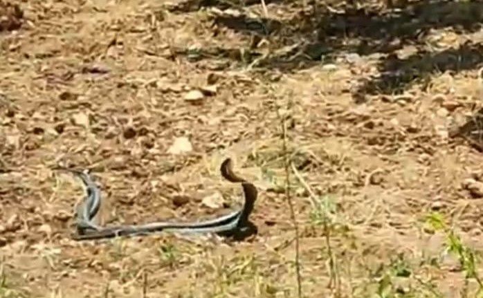 Malatya’nın Akçadağ ilçesinde, kayısı bahçesinde çiftleşme dansı yapan iki yılan vatandaşın cep telefonu kamerasıyla görüntülendi.