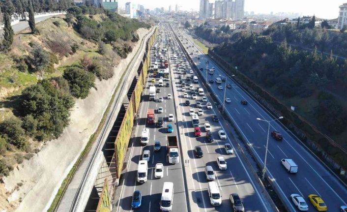 Öte yandan, çalışmaların sürdüğü şantiye alanı ve gerisinde bıraktığı yoğun trafik havadan görüntülendi.