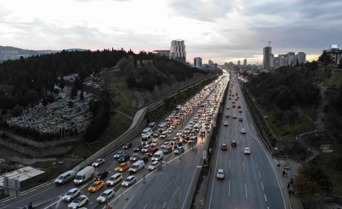 "Bostancı-Kayışdağı Arası Yol Kavşak Projesi" kapsamında başlatılan alt geçit çalışmaları nedeniyle D-100 kara yolunda şerit sayısı düşürüldü. Çalışmalar nedeniyle daraltılan yolda uzun araç kuyrukları oluşurken, trafikte oluşan yoğunluk havadan görüntülendi.