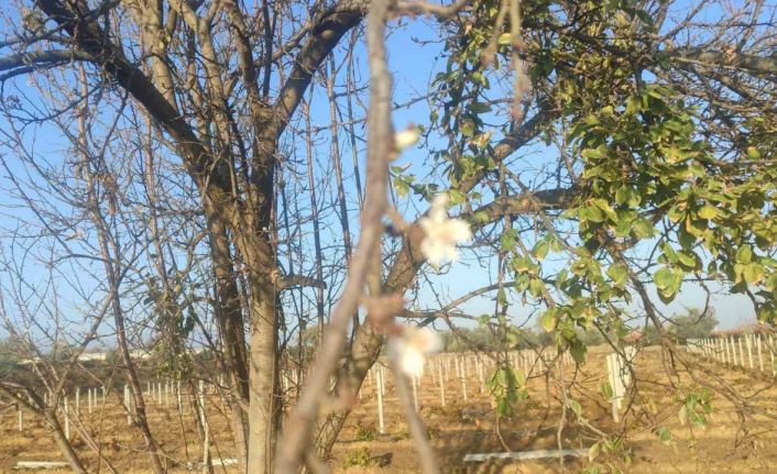 Tüm yurtta soğuk hava etkili olurken, Manisa’nın Sarıgöl ilçesinde erik ağacının çiçek açması üreticileri tedirgin etti.