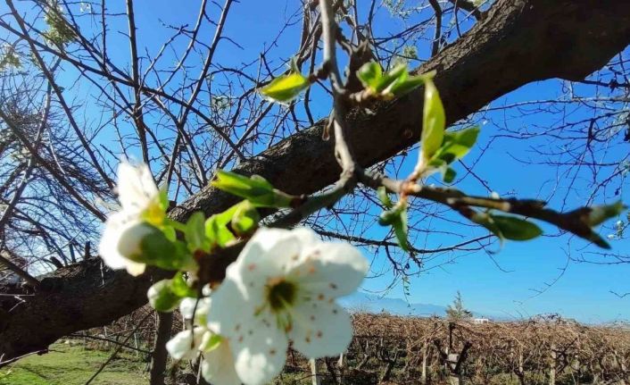 Manisa’nın Sarıgöl ilçesinde hava sıcaklığının mevsim normallerinin üzerinde seyretmesi nedeniyle çevredeki Baharlar, Emcelli ve Ziyanlar mahallelerinde badem, erik ve kayısı ağaçları erken çiçek açmaya başladı.