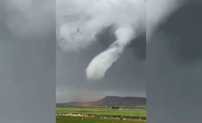 Mardin’in Mazıdağı ilçesinde arazide meydana gelen hortum, cep telefonu kamerasına yansıdı.