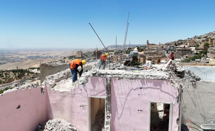 Mardin’de, tarihi kent siluetini bozan betonarme yapıların yıkımı sürüyor.