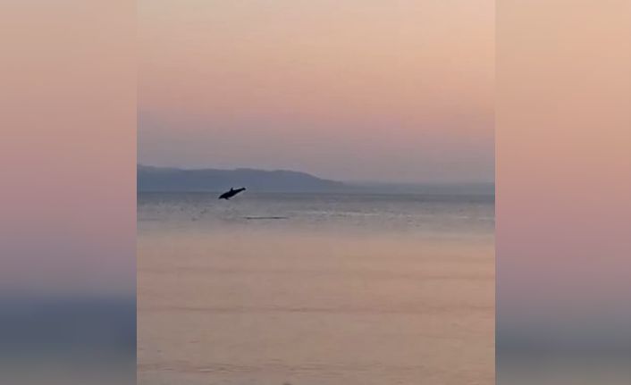 Marmara denizinde görüntülenen yunusların yaptığı geçiş; şovlarıyla izleyenleri mest ediyor.