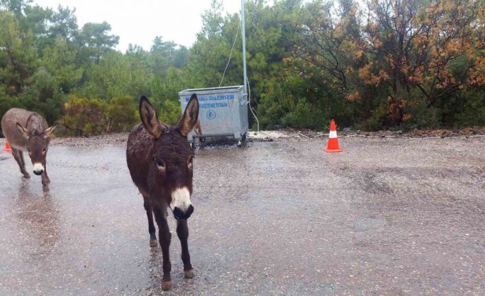 Marmaris-Datça karayolu üzerinde başıboş dolaşan eşekler hem sürücüler hem de hayvanlar için tehlike oluşturuyor. Yol kenarındaki çöp konteynırlarında yiyecek arayan eşekler, trafik akışını aksatırken, kazalara davetiye çıkarıyor.