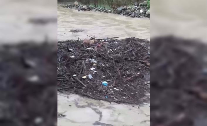 DÜZCE(İHA) – Düzce’de aşırı yağışlar dere yataklarında su seviyesini yükseltti. Melen Çayı’nda suya düşen bir köpek ise odun parçalarının üzerinde ilerleyerek gözden kayboldu.