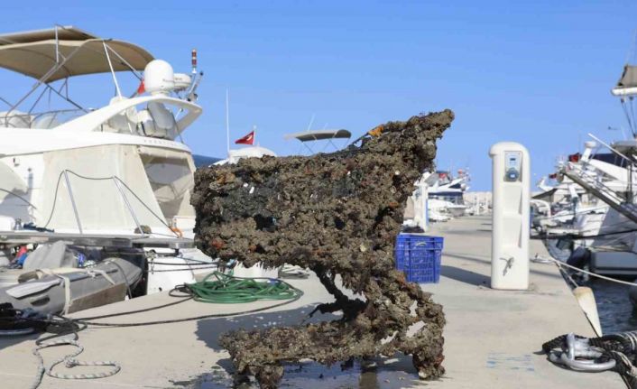 Mersin’de denizden çıkarılan çöpler, farkındalık oluşturmak amacıyla sahilde sergilendi. Denizden aralarında alışveriş arabasının da bulunduğu çöpler çıkarılırken, deniz ekosistemini tehdit eden hayalet ağlardan yapılan tünel vatandaşların ilgisiyle karşılaştı.