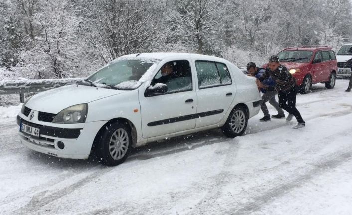 Kar yağışına yakalandıkları için yolda kaldıklarını ifade eden vatandaşlar, zincir takıp yollarına devam etmeye çalışacaklarını söyledi.