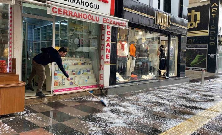 MERSİN (İHA) – Mersin’de öğleden sonra yağan şiddetli dolu hayatı adeta felç etti. Bir anda bastıran dolu yağışı, cadde ve sokakları beyaza bürürken, trafikte seyir halinde olan araç sürücüleri de zor anlar yaşadı.