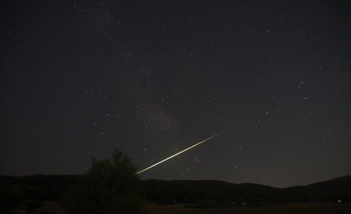 Bursa’da samanyolunu görüntülemek isteyen doğa fotoğrafçısı meteorun atmosfere girişini görüntüledi.