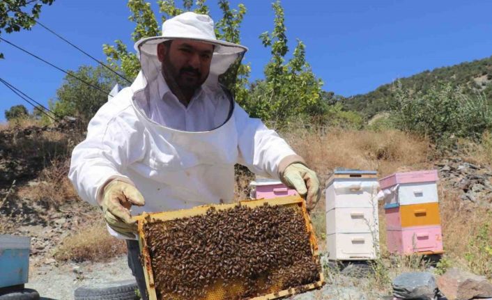 Kavurucu sıcakların arıcılık faaliyetlerini olumsuz etkilediğini belirten Sefa Öztürk, " Hobi olarak yapıyoruz. Arıcılığa ilk 2020 yılında başladık. Sürekli kendisinden bal aldığım bir ağabeyim vardı. Her sene eşe dosta arkadaşlara yüklü miktarda bal alıyordum, çünkü ailecek balı çok seviyoruz. Bir gün kendisine yine bal istediğimi söylediğim de bana, sana bir kovan vereyim yanıma da gel git bu işi öğren kendi balını kendin yap. Öğrenirsin yaparsın bu işi deyince heves ettik. Ondan iki tane kovan aldım, 2020 yılında bir kovanla başladım, şu an 10 tane kovanım var. Kendi balımızı üretiyoruz. Ticari bir faaliyetimiz yok ama bu işi hobi olarak yapıyoruz. Şimdi biz arılarımızı doğal olarak baktığımız, beslediğimiz için fazla bir yüklü miktarda bir hasat alım söz konusu olmuyor. Mesela kovan başı 15 kilo diyebiliriz. 10 tane kovanım var 150 kilo, eğer bu işi doğal yollardan yapmasak ek gıdalarla takviyelerle yapmış olsak miktar ikiye katlar ama biz bundan yana değiliz" dedi.