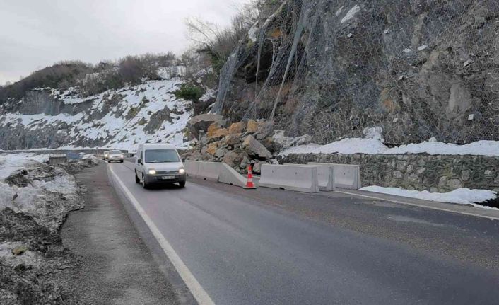 Zonguldak-İstanbul kara yolunda gece saatlerinde meydana gelen heyelan ekipler tarafından kaldırılarak yol trafiğe açıldı. Öte yandan aynı güzergahta geçen hafta yaşanan heyelanın ardından dev kayalar yoldan temizlenirken ulaşım ise halen tek şeritten sağlanıyor.
