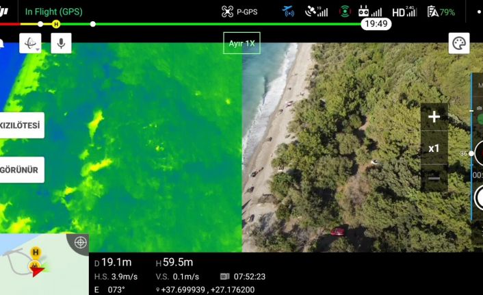 Aydın’da sahaya inen ‘koruyucu kartal’ mikro İHA’lar, Dilek Yarımadası Milli Parkı’nda orman yangınlarına karşı görev yapıyor. Yapılan denetimlerde termal sıcaklık yer yer 60 dereceleri görürken, vatandaşlar orman yangınlarına karşı uyarıldı.