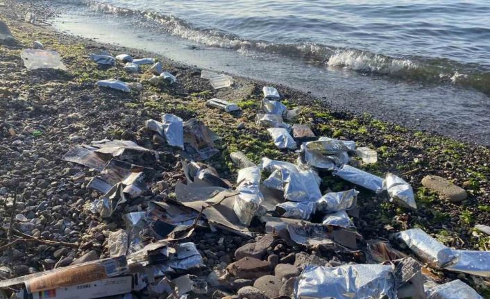 Evyapport liman işletmesinde konteyner yüklü geminin kıyıdaki 3 kule vince çarparak devirmesinin ardından denize düşen paketli gıdalar ve içecekler kıyıya vurdu. Aralarında kraker ve su şişelerinin olduğu paketler çevre kirliliğine sebep oldu.
