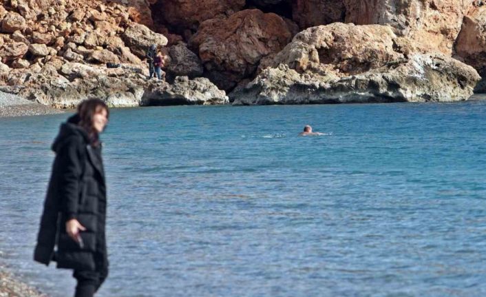 Hava sıcaklığının 15 derece ölçüldüğü Antalya’da deniz suyu sıcaklığı 22 derece olunca bazı tatilciler ve vatandaşlar montlarını çıkarıp denize girdi.