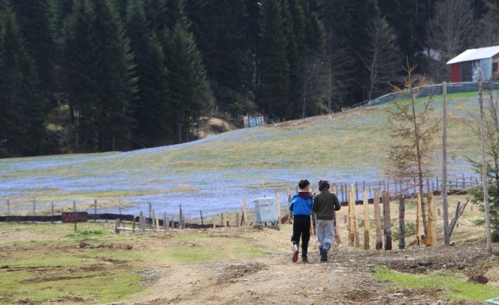 TRABZON'UN TONYA İLÇESİNE BAĞLI KADIRALAK YAYLASI'NDA NİSAN AYINDA AÇAN MEŞHUR MAVİ YILDIZ ÇİÇEKLERİ İLE YAYLA MORA BÜRÜNDÜ. HER YIL BİNLERCE VATANDAŞIN ZİYARET ETTİĞİ MOR YAYLA BU YIL KORONA VİRÜS NEDENİYLE SESSİZLİĞE BÜRÜNDÜ.