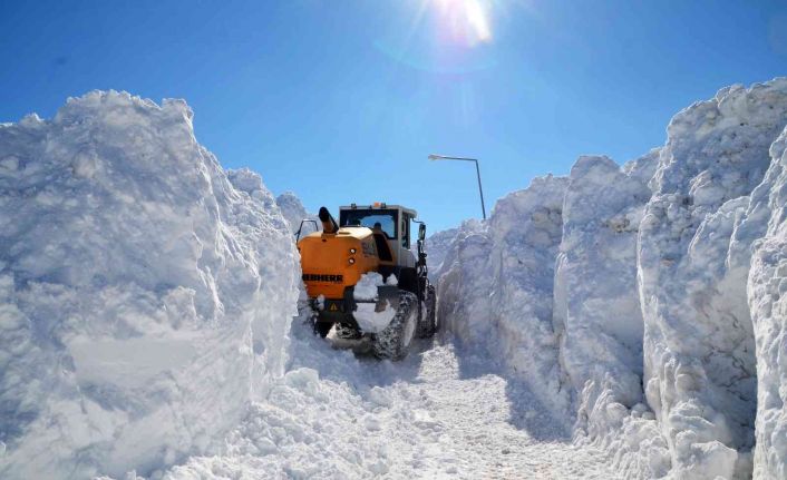 Geçtiğimiz hafta etkili olan kar yağışı ve tipi nedeniyle ulaşıma kapanan 10 köy ve 21 mezra yolu ulaşımının sağlandığı Üçevler grup köy yolunun alternatif Kayalısu köyü mevkiinde kar kalınlığı yer yer 5 metreye ulaştı. Kar kalınlığı nedeniyle zorlu coğrafyada güçlükle ilerleyebildiklerini söyleyen iş makinesi operatörü Veysel Erol, mart ayında etkili olan yoğun kar yağışı nedeniyle ulaşıma kapanan köy ve mezra yollarını açma çalışmalarına devam ettiklerini belirtti. İki günden beri 10 köy ve 21 mezra yolunu açmaya çalıştıklarını ifade eden Erol, “İki gündür bu yolda çalışmamız devam etmektedir. Bölgede kar kalınlığı yer yer 5 metreyi bulmaktadır. En büyük amacımız bir an önce vatandaşların yollarını açmaktır” dedi.