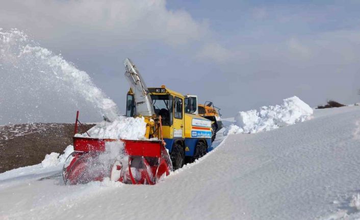 Muş’ta 10 köy ve 21 mezra ile ulaşımın sağlandığı Üçevler grup köy yolunda kalınlığı yer yer 5 metreyi bulan karda yol açma çalışmaları devam ediyor.
