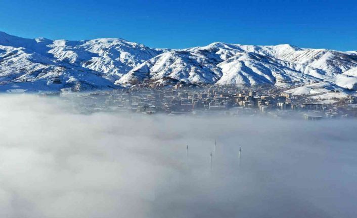 Dondurucu soğuğun etkili olduğu kentte aniden bastıran sis, görüş mesafesini 10 metreye kadar düşürdü. Kentin üzerini kaplayan sis bulutu, drone ile havadan görüntülendi. Karlı dağlarla birleşen sis, eşsiz manzaralar ortaya çıkardı. Adeta bir çarşaf gibi kentin üzerini kapatan beyaz örtü, kartpostallık görüntülere sahne olurken, İmam-ı Şafi Cami minarelerinin sis bulutları arasında süzülmesi ise göz kamaştırdı.