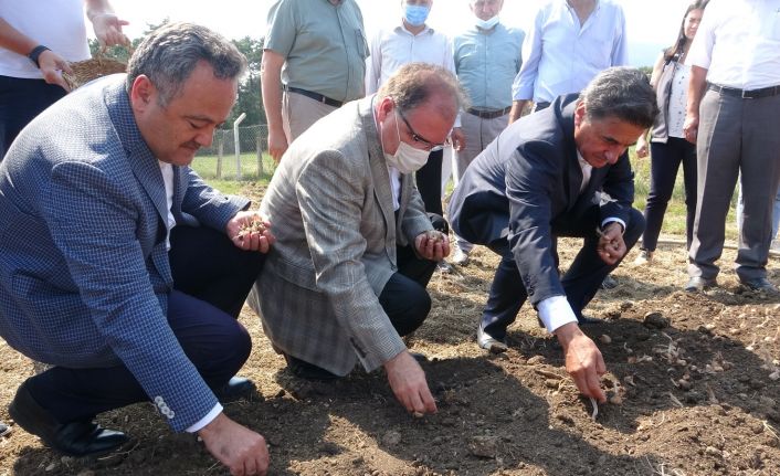 Boya, kozmetik, ilaç ve gıda gibi birçok alanda kullanılan safran dikimi sürüyor. Kırmızı renkteki poleni en değerli kısmı olan soğanı, mor renkli çiçekleri ile sarı polenleri de satılarak üreticisine gelir kaynağı olan safran dikimi için Kırıklar köyünde çiftçi Şaban Yılmaz’a ait tarlada tören düzenlendi. Safran dikimine katılan AK Parti Karabük Milletvekili Niyazi Güneş, Safranbolu Kaymakamı Mehmet Türköz, İl Tarım ve Orman Müdürü Çetin Ayvalık, AK Parti Karabük İl Başkanı İsmail Altınöz, AK Parti Safranbolu İlçe Başkanı Mehmet Sarı safran soğanlarını toprakla buluşturdu.