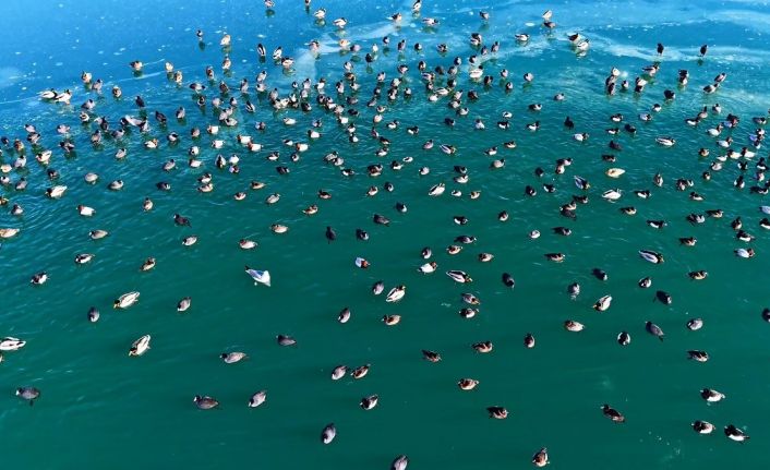 İçerik üreticisi Ercan Baş tarafından kaydedilen görüntülerde, buzların arasındaki su birikintilerinde ördeklerin kanat çırpması ve su üzerindeki zarif süzülüşleri dikkat çekti. Özellikle sürü halinde hareket eden kuşların göl yüzeyinde oluşturduğu ahenk izleyenleri hayran bıraktı. Doğal güzelliği ve zengin kuş çeşitliliğiyle bilinen Nazik Gölü’nde ortaya çıkan bu manzara, fotoğrafçılar ve doğa tutkunlarının da ilgisini çekti. Buzların çözülmesiyle gölde kuş hareketliliğinin artması beklenirken, bölge her yıl olduğu gibi bu yıl da doğaseverler için önemli bir gözlem noktası olmaya devam ediyor.