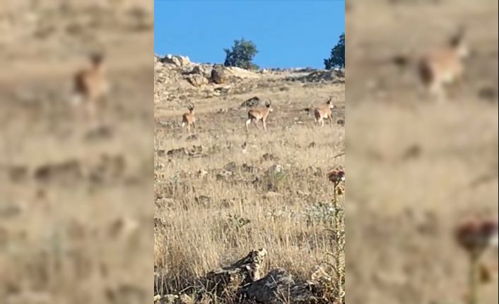Nesli tehdit altındaki dağ keçileri, Mardin’in Mazıdağı ilçesi kırsalında görüntülendi.