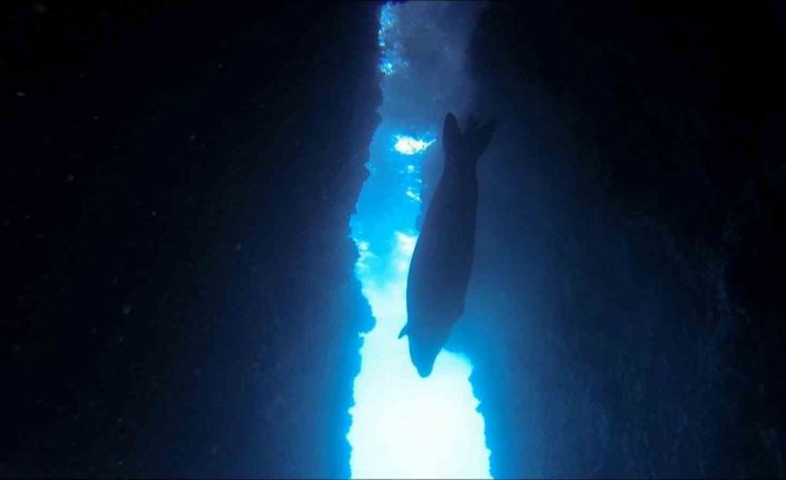 Aydın’ın Kuşadası ilçesinde, nesli tehlike altında olan Akdeniz foku (monachus monachus), sualtı kamerasıyla görüntülendi.