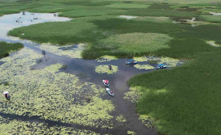 Türkiye’nin en büyük nilüfer deryasını bünyesinde barındıran Çivril Işıklı Gölü’nde görsel şölen başladı. Yeşille mavinin buluştuğu eşsiz doğasıyla doğaseverlerin gözdesi olan gölde, aynı anda açılan 20 tur teknesinin nilüfer tarlalarıyla buluştuğu anlarda büyüleyen görüntüler oluşturdu.