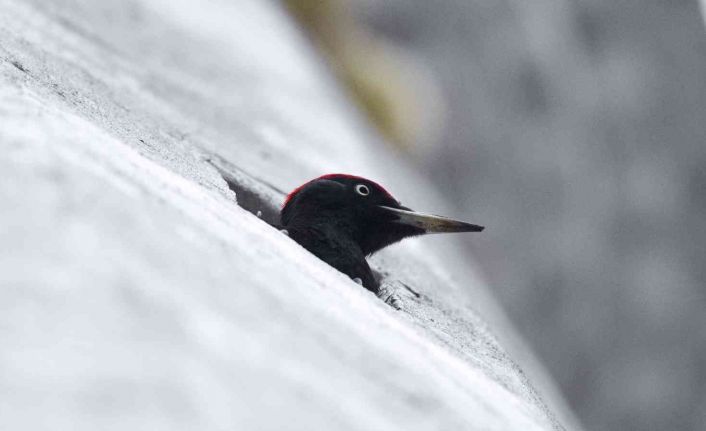 Rize merkeze bağlı Kurtuluş köyünde 3 yıldır cami minaresini yuva belleyen Kara Ağaçkakan köylülerin ilgi odağı oldu.