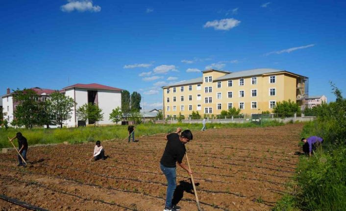 Öğretmen ve öğrencilerin kendi çabaları ile tarıma kazandırdıkları okul arazisindeki alana ektikleri sebzelerin bakımını ise yaz aylarında görevliler üstleniyor.