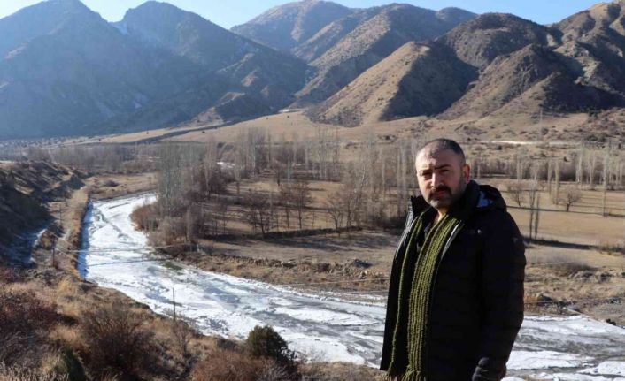 Erzurum’un Oltu ilçesinde kurak hava devam ederken Oltu Çayı buz tuttu.