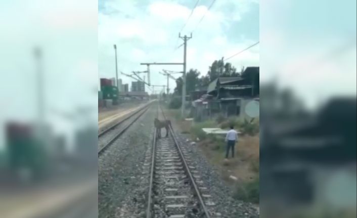 Kim veya kimler tarafından raylara bağlanarak ölüme terk edildiği bilinmeyen at, makinistin uğraşı sonucu yularının çözülmesi ile serbest bırakılarak özgürlüğüne kavuşurken, o anlar cep telefonu kamerasına yansıdı.