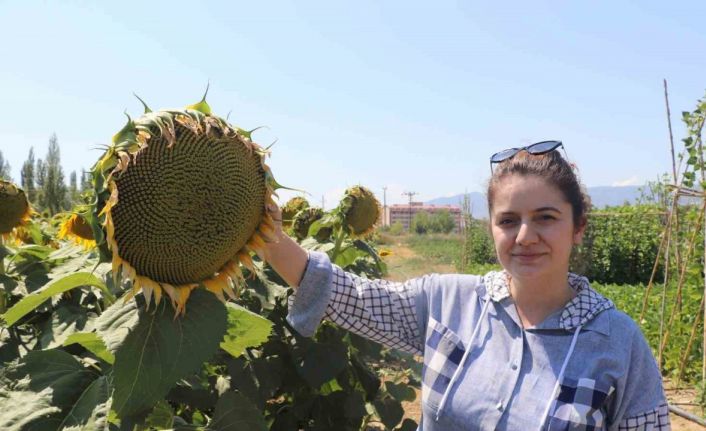 Ziraat Fakültesi Tarla Bitkileri Bölümü Endüstri Bitkileri bölümü Dr. Şaziye Dökülen" Burada çalışma alanlarımızdan ayçiçeği bitkisi vardır. Ayçiçeği bitkisi gübreleme çalışmasını yürütüyoruz. Burada kimyasal gübre dozları ve organamineral gübre dozları kullanılmaktadır. Organamineral gübre şu anda gündemde olan bir gübre çeşididir. Organamineral gübre kimyasal ve organik maddelerin yani gübrelerin birlikte harmanlanarak kullanılmasıdır. Yani bir tarafta sadece kimyasal gübre kullanımı söz konusu, bir tarafta ise hem organik hem de kimyasal gübre kullanımı söz konusudur. Aynı zamanda bunların dekara ne kadar verim verebileceğini ölçmek için de belirli dozları bulunuyor. Dekara 3,6,9,12,15 ve 18 kg olmak üzere bu şekilde çalışmalarımızı yürütüyoruz. Bu ayçiçeği çeşidi yağlık bir çeşittir. Tokat bölgesi ayçiçeği üretiminde ön planda olan iller arasında yer alıyor. Ayçiçeği ülkemizde yağ bitkileri açısından ilk sırada yer alan bir bitkidir. Biz de gerek çiftçiye gerekse bilimsel anlamdan yani literatür kaynağı olmak adına, hangi gübrenin gerek verimine gerek yağ oranına ne tür fayda sağlayacağını görmek adına bu çalışmayı yürütüyoruz. Bu yıl bu çalışmamızın ilk yılı bir daha ki yıl tekrarlanacak ve 2 yılın sonucuna göre şu gübre organamineral gübre veya kimyasal gübrenin şu dozları diye kullanılması geçerliliğinin tavsiyesinde bulunulacak" diye konuştu.