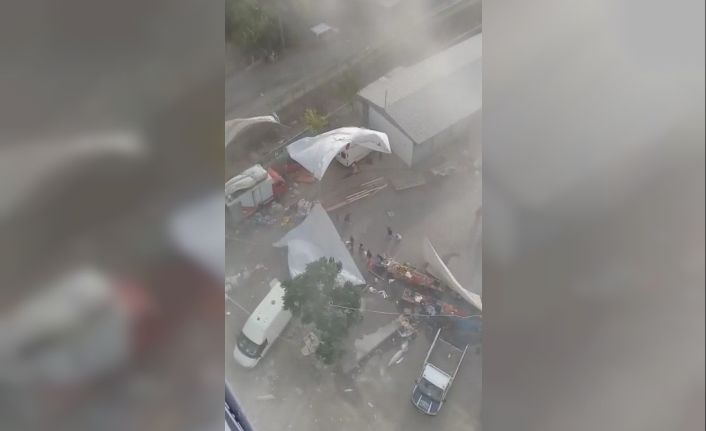 Osmaniye’nin Düziçi ilçesinde aniden gelen fırtına ortalığı toz dumana katarken semt pazarındaki esnaf vatandaşlara zor anlar yaşattı.