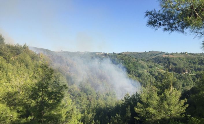 Osmaniye’nin Düziçi ilçesinde çamlık alanda çıkan orman yangınına arazi şartlarından dolayı helikopterle müdahale ediliyor.