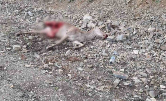 Bolu’da orman yolunda otomobilin çarptığı geyik telef oldu. Telef olan geyiğin bir kısmını kurtlar yedi.