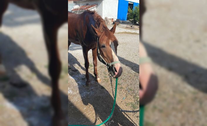 Eskişehir’de 40 dereceye kadar çıkan sıcaklıklardan bunalan Ova isimli at, bahçe hortumunu pipet gibi kullanarak su içip serinliyor.