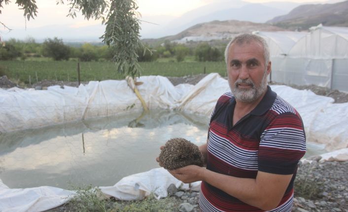 Erzincan’da bahçe sulama havuzuna düşen kirpi boğulmadan köylüler tarafından kürekle çıkarılarak doğaya salındı.