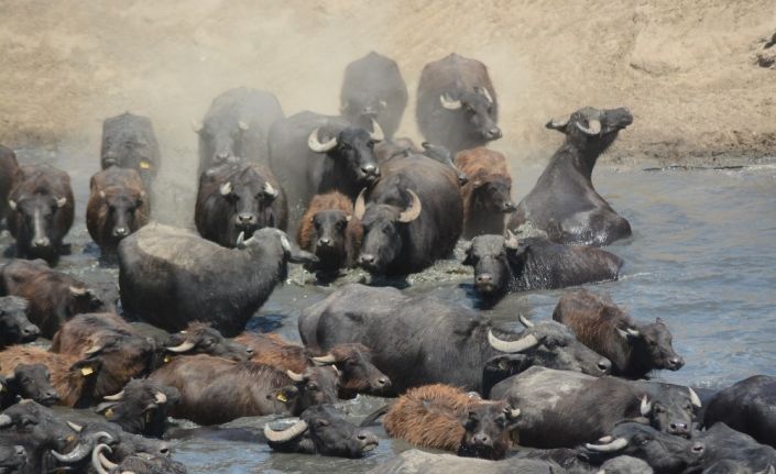 Suda serinleyen mandalara yöresel şekilde seslenen çoban Mehmet Dinçer, sesine hayvanların tepki vermemesi üzerine, "Hayvanlar suyun keyfine varmış, ben de olsam sudan çıkmam" dedi.