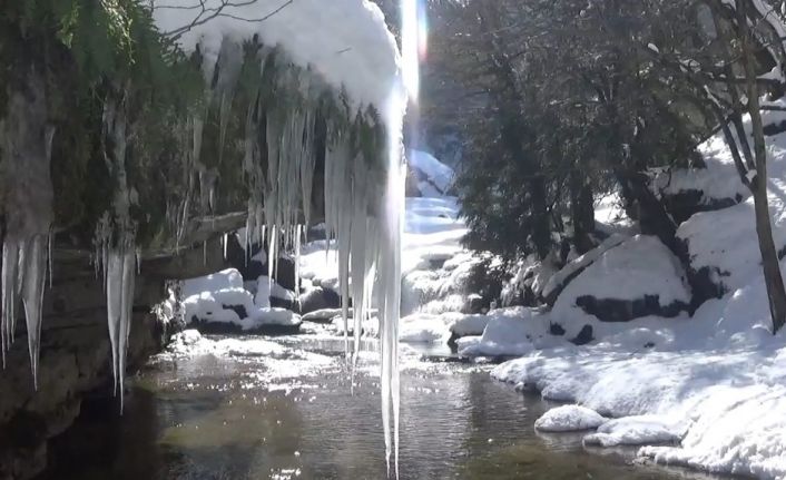 Bursa’da doğa harikası şelale kar yağışının ardından buz tuttu. Ortaya seyrine doyum olmayan kartpostallık görüntüler çıktı.
