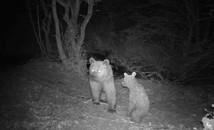 Eskişehir’de fotokapan tarafından görüntülen anne bozayı ve yavrusunun ormandaki sevimli oyunu gülümsetti.