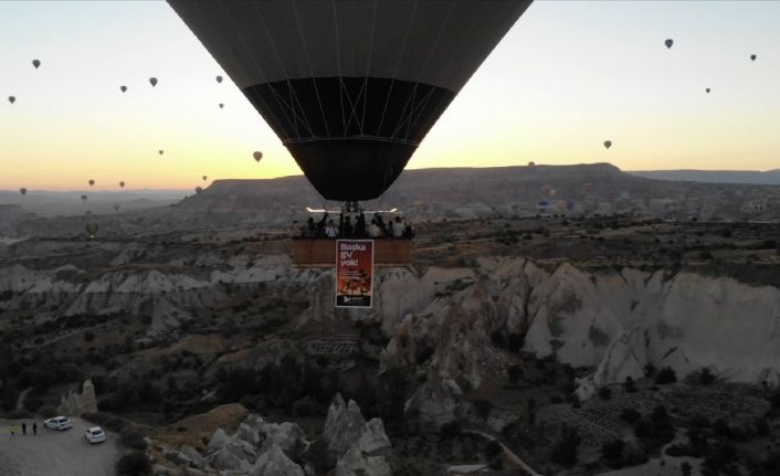 Hayvan Hakları Federasyonu orman yangınlarında etkilenen hayvanlara dikkat çekmek amacıyla Kapadokya’da sıcak hava balonuna asılan “Başka ev yok” pankartıyla destek istedi.