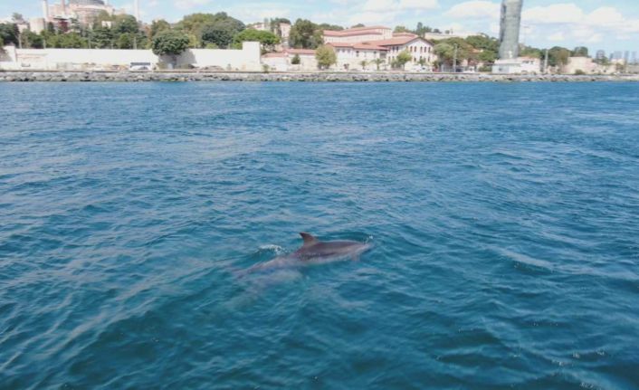 Masmavi denizde adeta dans edercesine yüzen yunuslar, İstanbul’da daha sık görülmeye başlandı. Tarihi yarımada manzarası ile birlikte yunusların suyun üzerinde yüzdüğü o anlar kartpostallık görüntüler oluşturdu.